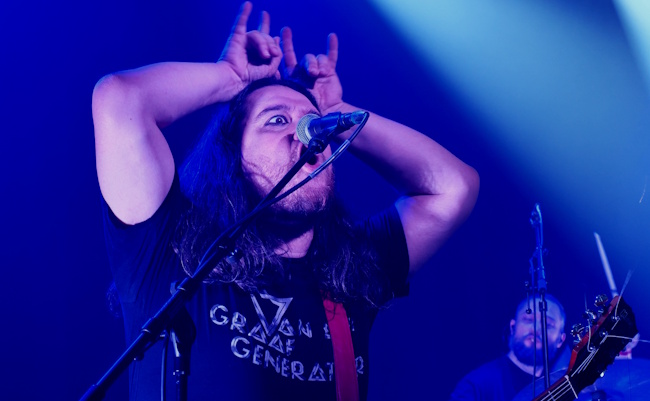 De stonerrock van het uit Oekraïne afkomstige Stoned Jesus gaat er ook prima in. De zwaar aangezette groove komt direct naar voren tijdens opener New Dawn. Het is duidelijk dat gitarist/ zanger Ihor Sydorenko de leading man is. De bassist en nieuwe drummer zijn gefocust op wat hij doet. Zal ook komen door het normaal gesproken vrije karakter van het gitaarspel. Vanavond speelt de band de nummers juist net als op de albums. Ook dan gaat het erin als zoete koek. Groove, zwaar aangezette gitaarpartijen, stevige bas en straks drumwerk zorgen dat je hoofd als vanzelf gaat bewegen. Dat Stoned Jesus ook van afwisseling in haar nummers houdt laat men ook regelmatig horen. Denk aan Shadowland, See You on the Road en Here Come the Robots. Het oudere werk kent duidelijk wat meer doom invloeden. Zo klinken de al jaren niet gespeelde Rituals of the Sun en Hands Resist Him redelijk rechttoe rechtaan. Zeker als je dit vergelijkt met nieuw(er) werk van de band. Moet gezegd dat het nieuwe nummer Low ook van dik hout zaagt men planken is en tegelijk het hardste nummer van de avond is. De zware metal invloed is men dus niet bepaald verloren. I’m the Mountain dreunt ook lekker uit de speakers. Het stemmen van de gitaar tussen de nummers in haalt de vaart een beetje uit het concert, maar zodra het volgende nummer begint ben je dat alweer vergeten.